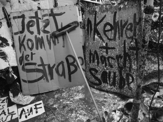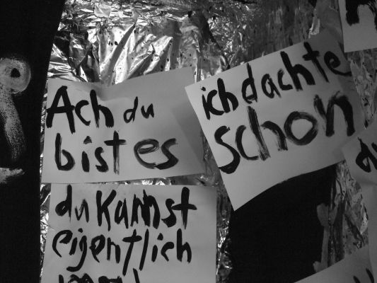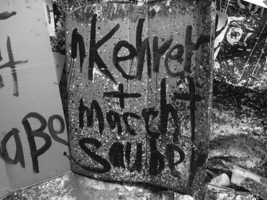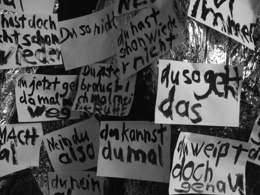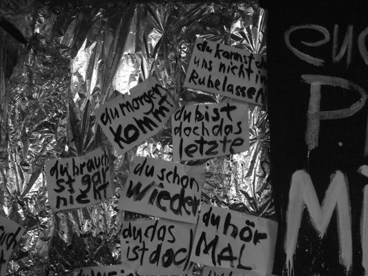 Als Zeichen und Protest gegen die Gewalttätigkeiten gegen meine künstlerische
